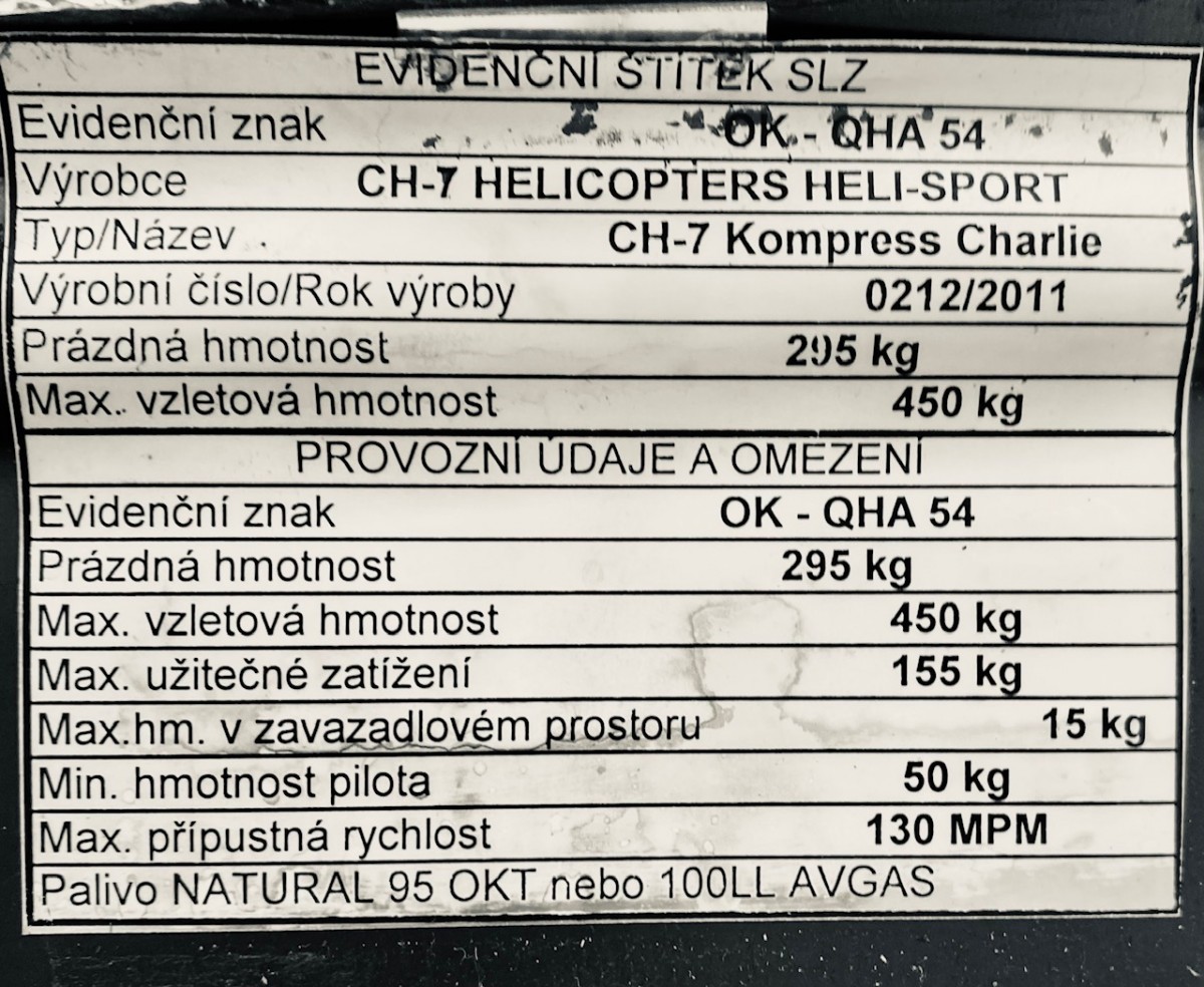 Cena: 60.000 Euro bez DPH více informací na tel: +420 602 543 356, e-mail: dkryl@mamba-air.cz